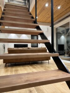 このような階段は、スケルトン階段、もしくはシースルー階段・オープン階段・ストリップ階段などとも呼ばれていますね。